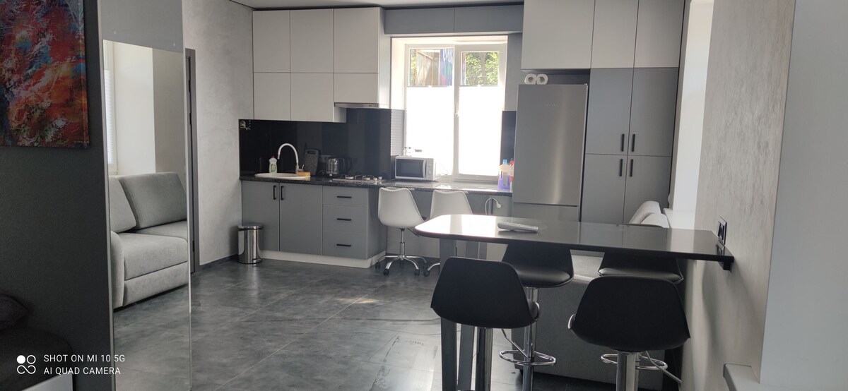 Moderno apartamento nuevo, ubicado a 300 metros (6 minutos a pie) de Sofievka y Dinopark. El apartamento está equipado con wifi, cocina. Productos higiénicos, etc. Se proporciona estacionamiento gratuito en el territorio del complejo. Cerca del complejo se encuentran el restaurante Meat and Wine, tiendas de comestibles, etc.
