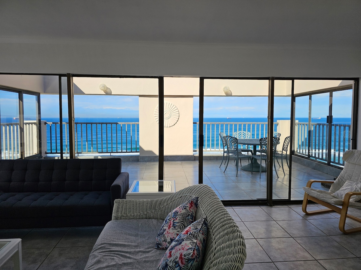 Home away from home comfort in a well furnished and equipped 3 bedroom fully self-catering apartment overlooking life-guarded Bronze Beach. Gorgeous ocean views, A spacious balcony with breath taking views, full DSTV, Netflix, uncapped wifi, aircon in the open plan living area and ceiling fans in all rooms. Pool towels, bathroom and kitchen amenities are provided. Easy beach access gate and a beautiful big pool in the complex. Secure parking on-site and an undercover parking. 24 hour security.