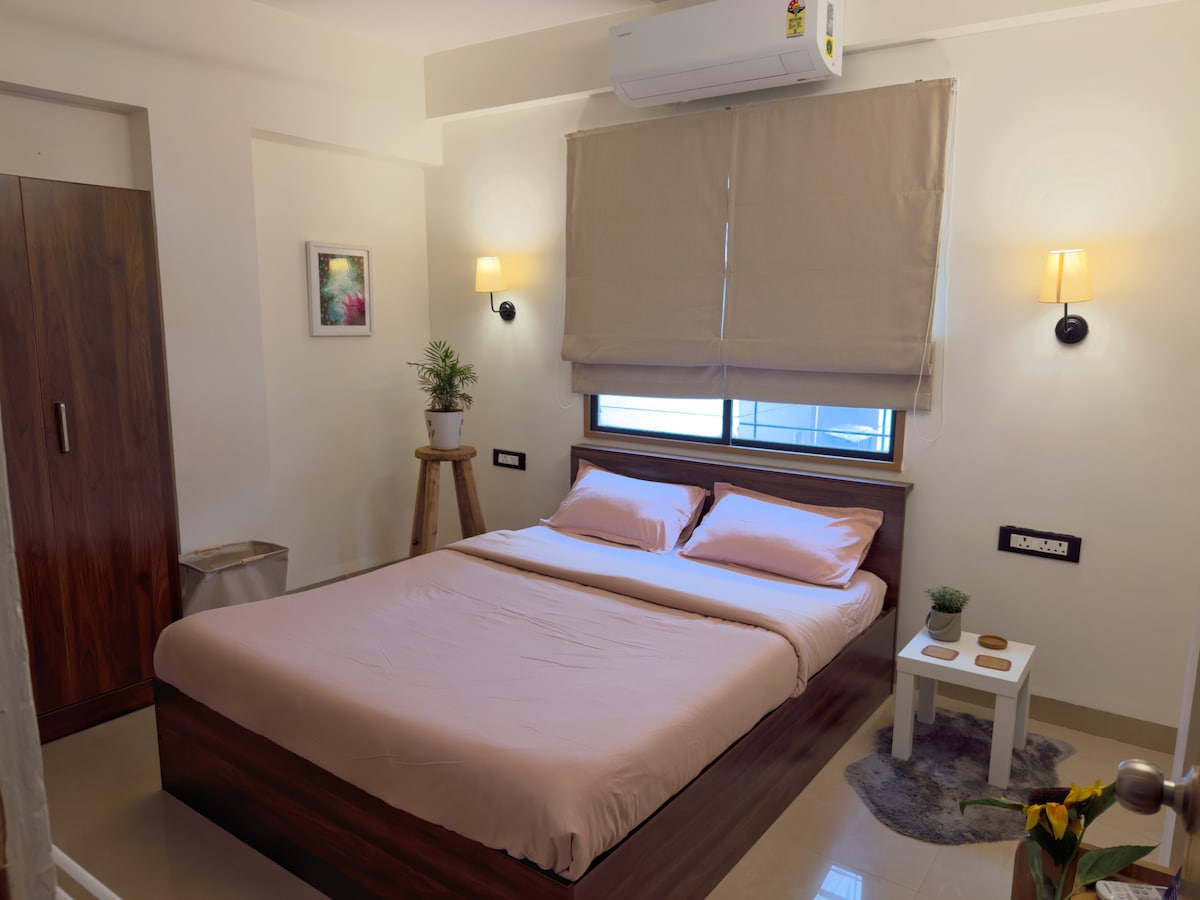 Bienvenido a tu Boho Studio Hideaway en el corazón de Indore, una mezcla perfecta de comodidad, creatividad y calma. Este estudio cuidadosamente diseñado cuenta con un balcón privado, una acogedora silla colgante y cálidos interiores que te invitan a relajarte, descansar y sentirte como en casa. Perfecto para viajeros solos, parejas o huéspedes que trabajan desde cualquier lugar, el apartamento ofrece: Wifi de alta velocidad Configuración de TV inteligente y salón acogedor Balcón privado con asientos Baño limpio y espacioso