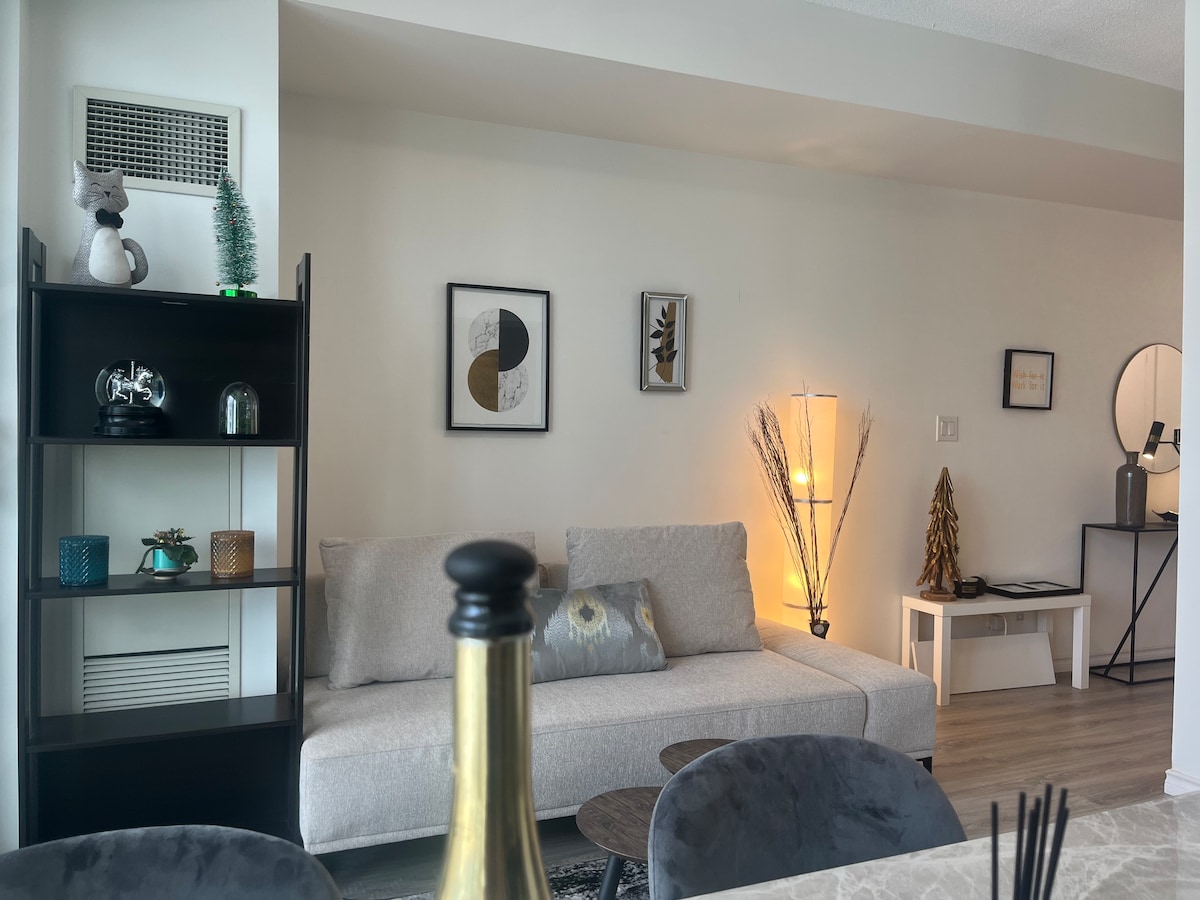 Marvel at the glorious Toronto urban vibes from your room with floor to ceiling panoramic windows. This 1 bedroom condo is professionally designed with modern finishes. You will absolutely love the space we have prepared for you. Relax, unwin,d and enjoy the city views on the private balcony with outdoor furniture. Professionally cleaned after each guest checkout. 100% private and unshared, entire modern condominium unit. Safe, secure, and easy self-check-in procedures with 24/7 security.
