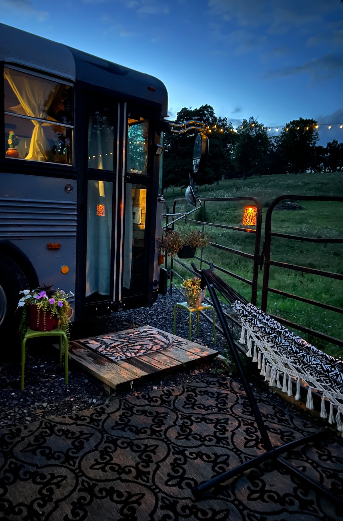 Por favor, lee todo el anuncio antes de reservar* Glamping en la granja. Disfruta de una estancia en un autobús escolar convertido en una pequeña casa: un Skoolie. El Skoolie tiene unos 320 pies cuadrados. Un corto paseo por la granja te lleva a ver hermosos atardeceres y amaneceres. Después del anochecer, disfruta de la fogata y asa nubes de azúcar y, en noches despejadas, disfruta de las estrellas. En algunas noches de verano, disfruta de luciérnagas centelleando en los pastos.
