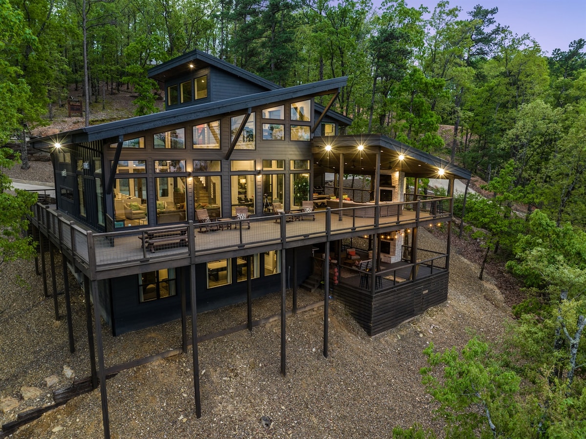 *Amplio plano de piso abierto para que tu grupo esté "juntos", pero no tropezando por todas partes. los unos a los otros *Un total de 6 dormitorios, uno de los cuales es una litera extragrande con capacidad para 14 personas. *Los otros 5 dormitorios tienen camas tamaño king y baño completo. *Los dormitorios de arriba tienen un balcón, que proporciona vistas espectaculares de la Montañas y bosques de Oklahoma * Cubierta enorme con tobogán y muro de escalada adjunto *También en la terraza hay una cocina con parrilla de gas incorporada y bañera de hidromasaje para 8 personas. *Increíble sala de juegos * Loft de arriba