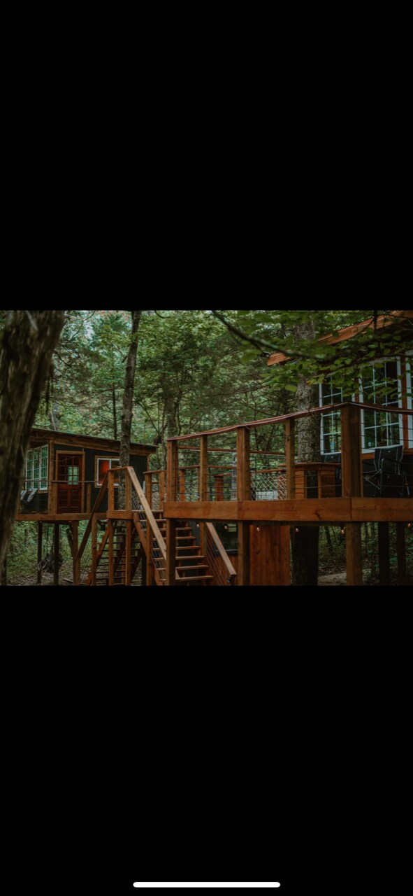 Reconnect with nature at this unforgettable off grid escape. Twin modern treehouses with connecting tower including suspension bridges to access rooms. Treehouses overlook a 5 acre private lake, with hanging chairs beneath and cafe lighting. Firepit awaits just feet from the tower. Under the tower, a modern bathroom with shower. Outdoor kitchen on top of tower with Blackstone. Enjoy fishing, swimming, or boating on the lake, read or take a peaceful hike on the trails. Restricted to age 18 & up