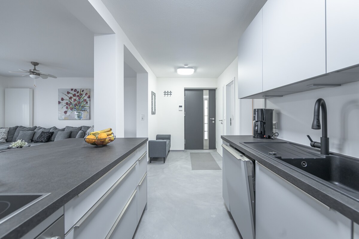 Este lugar especial se encuentra a pocos pasos de tiendas y conexiones de autobús. El apartamento se encuentra en la segunda fila hasta la calle, por lo tanto, muy tranquilo y tiene una vista distante única. Para disfrutar de estos beneficios, se deben superar algunas escaleras para entonces, con discapacidad para caminar. Una ducha a ras de suelo, cocina equipada de alta calidad con isla de cocina y comedor, cama grande (180 × 200), sauna son algunos de los muchos aspectos más destacados.