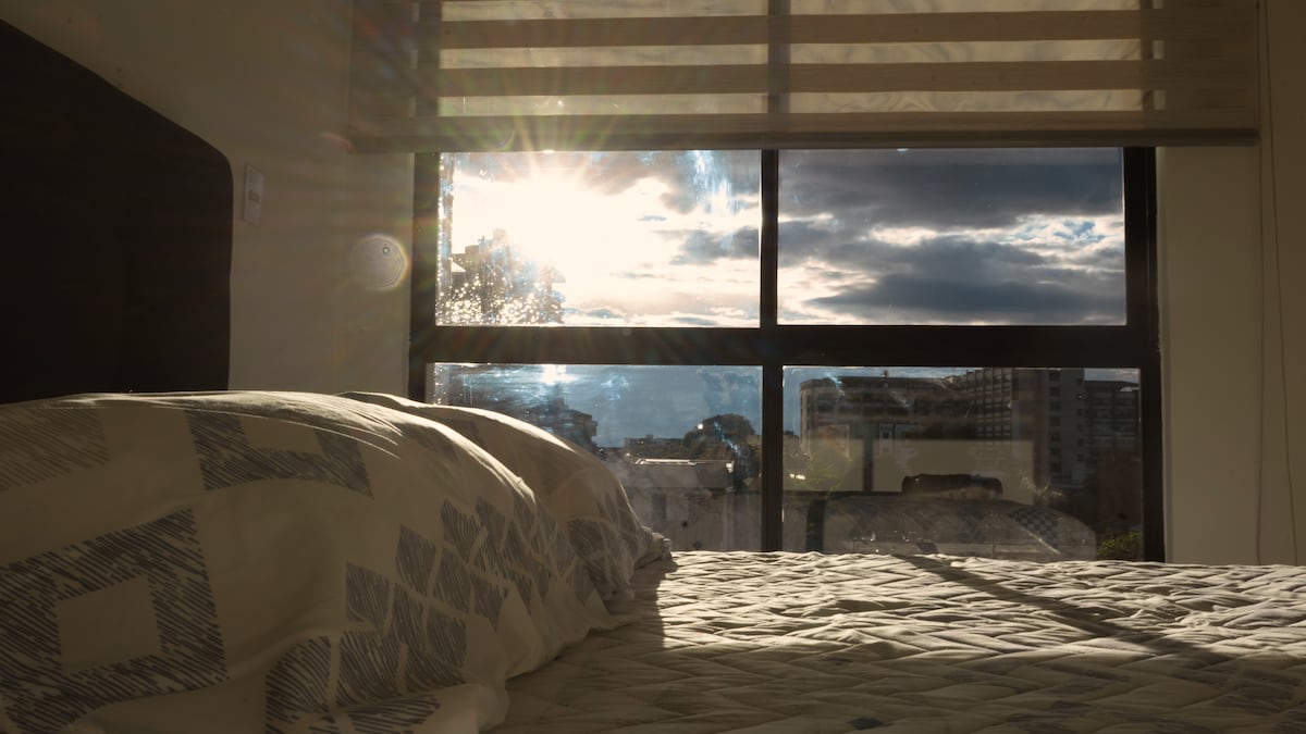🌿Loft premium para dos personas | 🌈Terraza privada + ducha doble + parqueadero + espacio de coworking Vive una experiencia de lujo — ideal para parejas o profesionales que buscan combinar trabajo y comodidad. Se escucha el ruido de los carros por estar sobre una avenida principal. Cama doble (1.40 x 1.90 m) Parqueadero privado en el edificio del frente. Disfruta de un baño con inspiración tipo spa con ducha doble y grifería minimalista, además toallas 100% algodón turco de 600 gms.