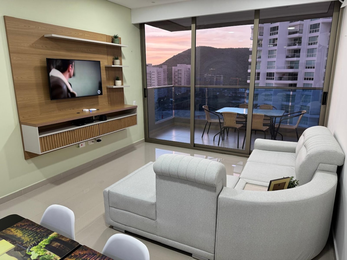 Apartamento ubicado en el exclusivo sector de Pozos Colorados en Santa Marta, específicamente en el Condominio Samaria Club de Playa, uno de los mas modernos de la ciudad. En nuestro apartamento, se puede disfrutar del placer de estar frente al mar con únicos atardeceres, ademas de disfrutar de un condominio totalmente moderno y con las mejores zonas sociales con privilegio de tener una playa semi-privada. Nuestros huéspedes podrán disfrutar de un excelente apartamento totalmente dotado.