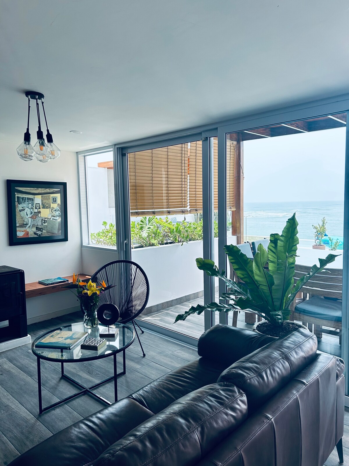 Hermoso y lujoso departamento frente al mar, ubicado a solo 30 minutos de Lima, inicio del Sur Chico y a 8 minutos caminando de la Playa Pulpos. Este acogedor departamento para 6 personas, es ideal para disfrutar de unas vacaciones inolvidables en familia o darte una escapada con tu pareja. Estarás a solo 10 y 15 minutos en auto de los balnearios de moda como Punta Hermosa y San Bartolo, rodeado de centros comerciales (como KM40 y Boulevard de Puntamar) y de los mejores bares y restaurantes.