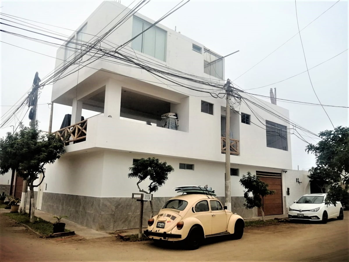 Departamento totalmente amoblado, situado muy cerca de las playas Los Pulpos y El Silencio ( tres minutos a pie), famoso por sus excelentes olas para el surf; ambiente muy tranquilo y apacible, ideal para teletrabajo, Wifi potente, cable, Netflix y Youtube, agua caliente y mucha ventilación. Situado cerca de tres minimercados y restaurantes con variedad de precios y especialidades. Son muy recomendables.Buena vista y distribución con respecto al mar. Atención directa de sus anfitriones.