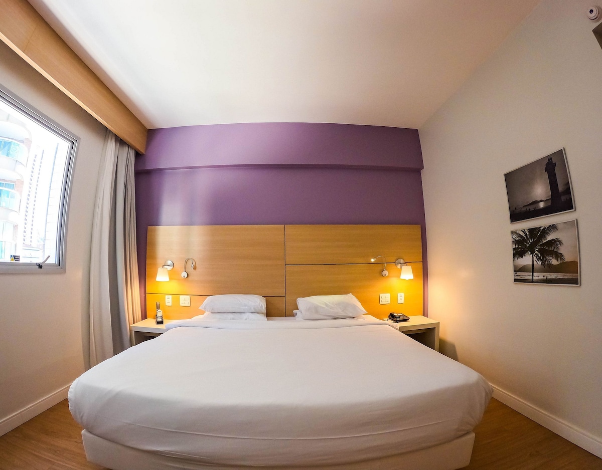 Apartamento mobiliado, apenas 230 metros da praia, menos de 3 minutos a pé. Roupa de cama, toalhas, ar condicionado, TV a cabo, wi-fi, cofre digital, secador de cabelo. Acomoda confortavelmente 4 pessoas, com uma cama de casal no quarto e um sofá cama na sala. Para maior conforto, o Flat conta com recepção 24 horas facilitando o check-in ou check-out, excelente café da manhã (pago a parte), piscina, academia, estacionamento com manobrista e limpeza diária, exceto domingos e feriados.