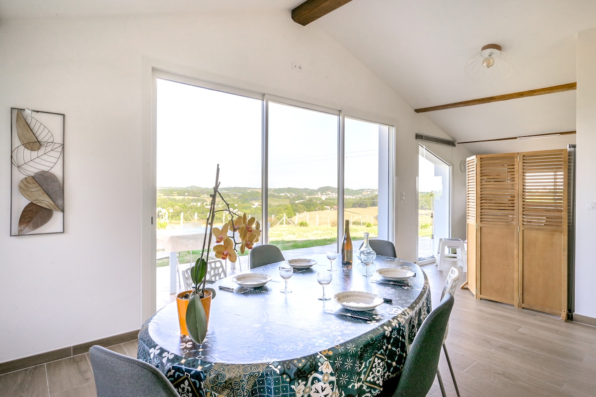 Encantador alojamiento rodeado de jardín y bosque verde. Los espacios son amplios y acogedores. La cocina es tipo americana y está muy equipada. El baño un placer con vistas también al bosque. Si venís con vuestra mascota, será feliz. Tenemos una preciosa beagle. Estamos a 2km de la frontera, a 10min de la playa , a 20min de San Sebastian y de Biarritz. Quieres pasear por monte? la ruta GR-10 comienza aquí mismo. El pueblo os encantará, es precioso con su frontón, su iglesia, su restaurante.
