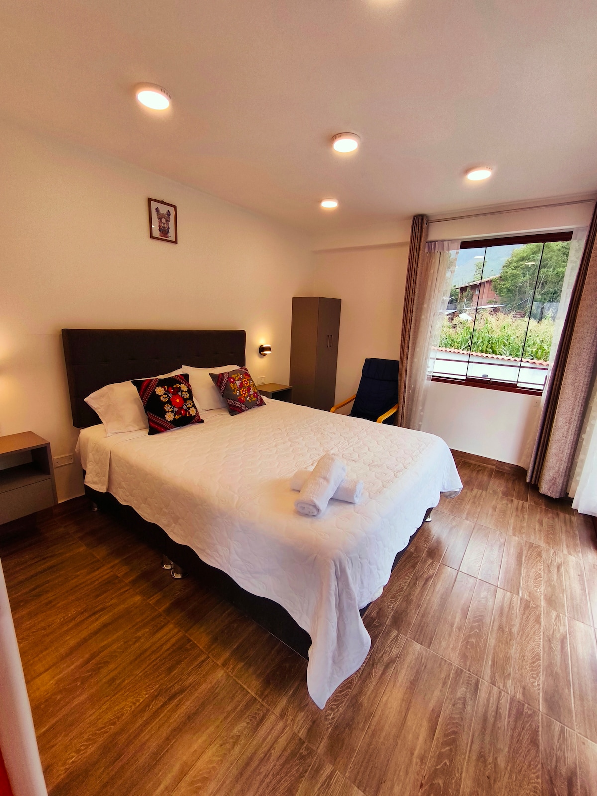 Alójate en este elegante departamento totalmente céntrico. Ubicado en el segundo piso y muy cerca de todo (mercados, restaurantes, tiendas, estación de tren de Urubamba, terminal de buses, etc.) con 2 dormitorios, sala, comedor, cocina, baño con Tina-hidromasaje y lavandería. Ideal para estadías cortas y largas, contamos con WiFi de alta velocidad ideal para nómadas digitales y viajeros comunes. Si requiere traslados, tours o experiencias personalizadas, no dude en escribirnos.