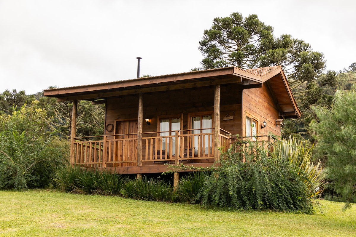Es una casa de campo rústica, cómoda y acogedora para dos personas, eventualmente acompañadas por un niño o una persona joven. Tiene sala de estar, cocina y baño. El dormitorio (colchón Ema nuevo) está en el entrepiso. Una terraza alrededor de la casa completa el espacio, rodeado de verde del bosque de araucarias y el jardín. Para convivir con el frío hay un calentador de leña. Hay otra casa en el terreno. El lugar está a 10 km de Esquina de Urubici, o a 8,5 km del portal de Caminhos da Colônia.