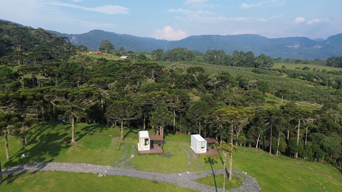 Ubicada en Urubici, la ciudad más bella de la Sierra de Santa Catarina - Una cápsula futurista con un diseño moderno que brinda una experiencia única y en total contacto con la naturaleza. Alójate con gran comodidad y disfruta de una vista increíble del pico más alto de Santa Catarina. La cápsula está equipada con una cocina compacta, cama queen, aire acondicionado, TV inteligente, Wi-Fi, ropa de cama y toallas, microondas, minibar, estufa, hervidor eléctrico, sandwichera, ollas, platos y cubiertos.