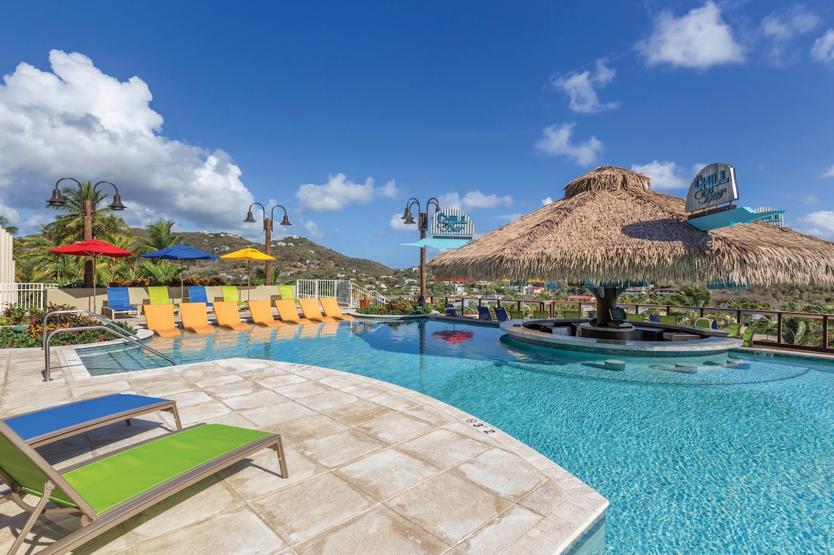 Este centro vacacional, enclavado en una cala bordeada por palmeras ondulantes, es un sueño tropical perfecto. Así que toma una silla de playa, quita las chanclas, bebe una sabrosa bebida en barco y deja que tu mirada descanse en una extensión de arena blanca y fina, aguas cristalinas y la isla de San Juan a lo lejos. Wyndham Margaritaville St Thomas | Studio Balcony • Tamaño: 324 - 324 • Cocina: parcial • Baños: 1 • Alojamiento: 4 huéspedes • Camas: Cama tamaño king - 1 sofá cama - 1