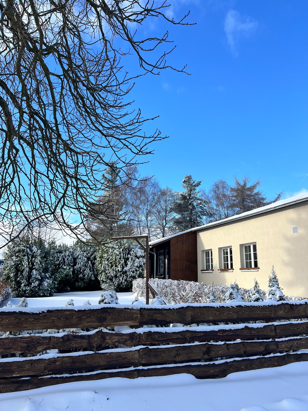 Completa soledad en el corazón de la naturaleza, donde incluso los zorros le darán las buenas noches. La casa se encuentra en la zona protegida de los Montes de Lusacia, mientras que el jardín abarca casi 15.000 metros para su descanso. Además, se puede utilizar la cocina de verano o la piscina cubierta climatizada con sauna. También puede relajarse junto a la chimenea de azulejos, que incluye un horno. La ubicación de la casa ofrece innumerables vistas increíbles de los alrededores, incluyendo la posibilidad de visitar lugares de interés turístico, por ejemplo, un castillo de roca justo detrás de la casa.