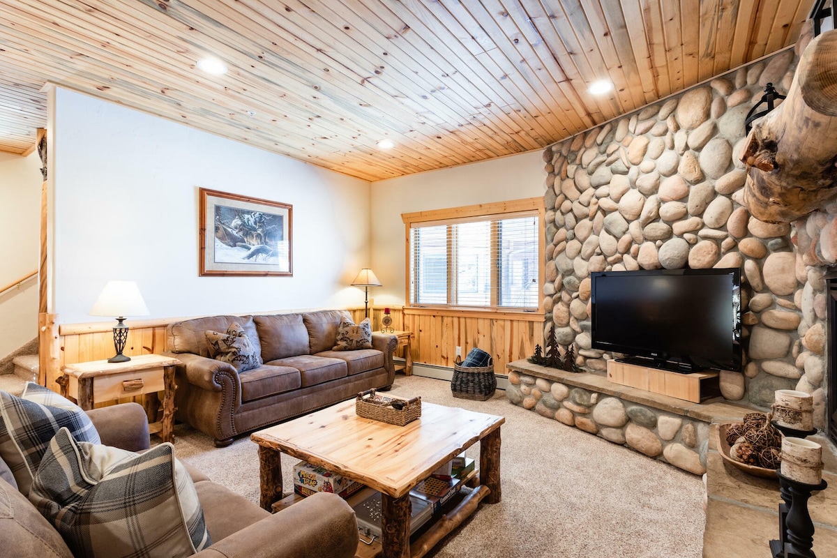 Relájate en este apartamento de montaña de dos niveles bellamente diseñado en la base de Canyons. Esta casa familiar ha sido diseñada cuidadosamente, combinando la elegancia moderna con una acogedora sensación rústica de montaña, incluyendo techos abovedados con vigas de madera expuestas y una chimenea de piedra. Ubicado a pocos pasos del telesilla Cabriolet, no hay mejor punto de partida para tus aventuras en la montaña. Regresa a casa para pasar una noche cómoda junto al fuego y tu propio patio privado para asar a la parrilla y disfrutar de las vistas.