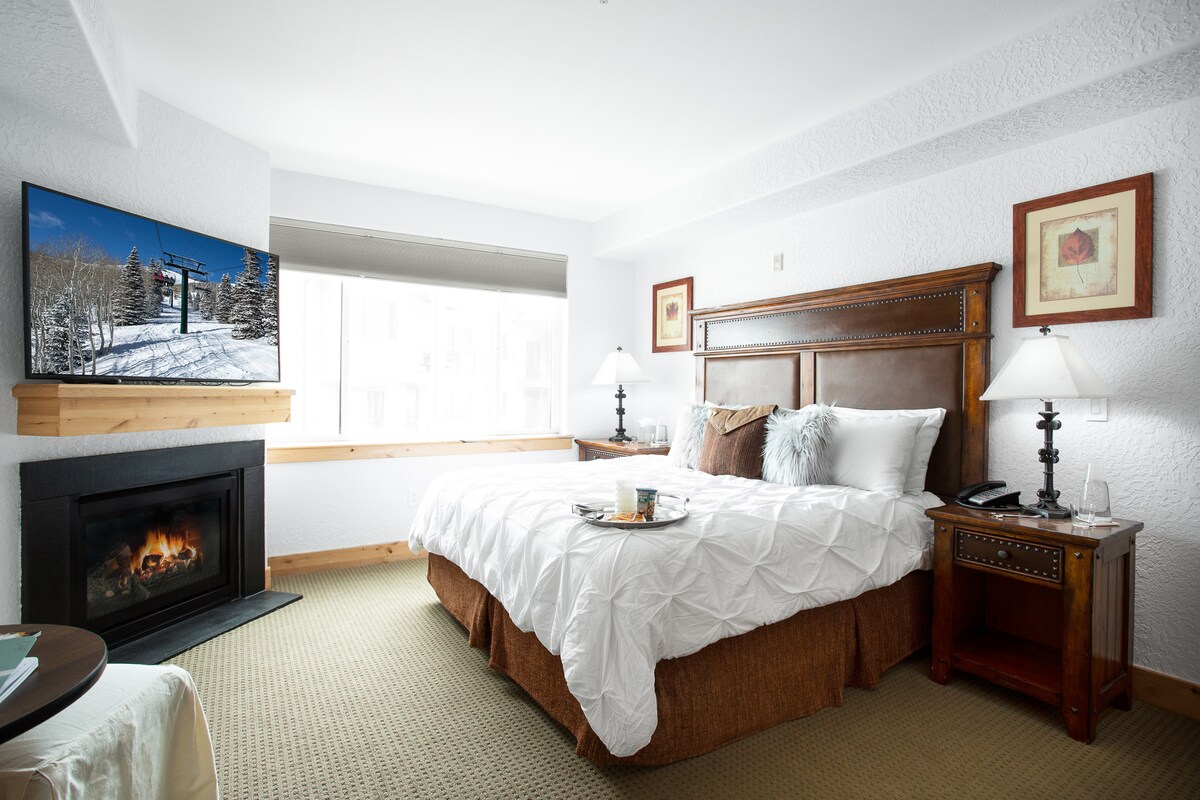 ¡La habitación King perfecta en la base de la montaña! Cocina americana, chimenea, TV de 58 pulgadas, bañera de hidromasaje con sales de baño y burbujas, sábanas y toallas de lujo, baño y cuerpo orgánicos, cocina americana totalmente equipada, ¡incluyendo un enfriador de vino! Mesa de bistró y asientos, vistas a la montaña, albornoces... la habitación de hotel perfecta para relajarse. Disfruta del jacuzzi y de la ubicación céntrica. Equipo de aparcacoches en el vestíbulo, transporte gratuito por el pueblo y parada de autobús urbano gratuita enfrente. Aparcamiento interior seguro, gimnasio, sauna, vapor, piscina climatizada...
