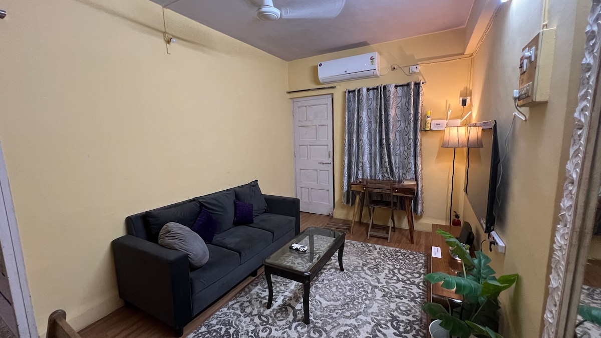 Welcome to Your Modern Day-Chic 1-Bedroom Apartment Retreat near BKC! With its minimalist design, ample workspace, entertainment options, and essential amenities, it caters to the needs of both business and leisure travelers! Features: ★ Large Work-Desk ★ Free High-Speed WiFi ★ Smart TV ★ Tata Sky with all HD Channels ★ Sound Bar ★ Microwave/Fridge ★ Air Fryer ★ Air Purifier ★ Water Purifier Book now and experience the perfect blend of modernity and comfort!