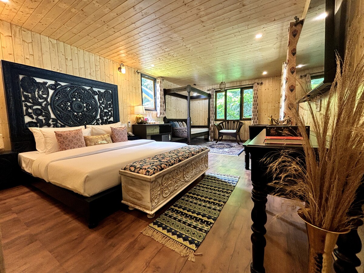 Welcome to our charming Sangam category cottage : Perfectly situated at the serene confluence of the Ganga & Indrawati rivers. This exquisite room offers the ideal blend of natural beauty and modern luxury, designed to provide an unforgettable stay in the hills. Experience the breathtaking views of Holy Ganga right from your King Size Bed through the massive picture windows.