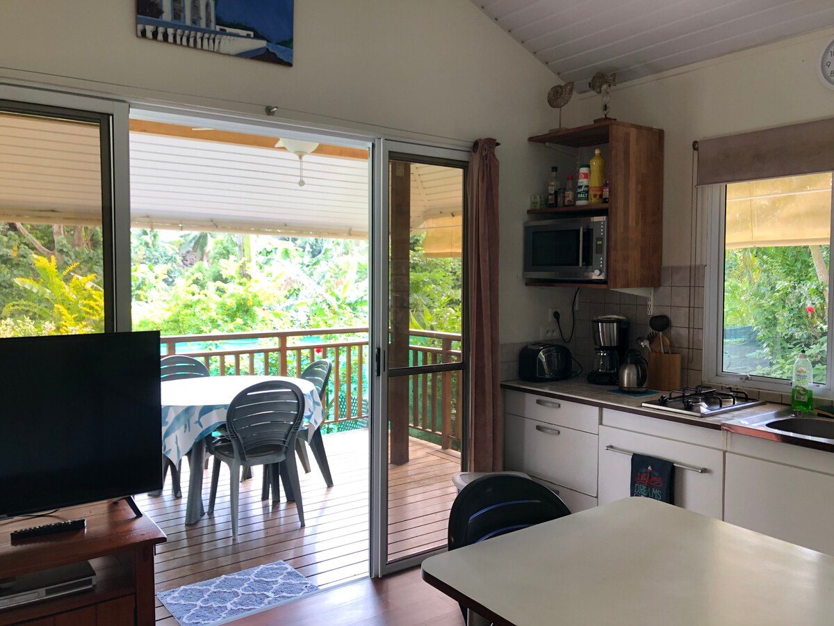 Nuestra humilde morada situada en Tahaa, frente al paso PAIPAI, en la punta Tiamahana, tiene capacidad para 6 personas. ¡La propiedad del cantante Joe Dassin se encuentra a 500 m! ¡Para la emblemática carrera de piraguas que tendrá lugar a principios de noviembre, estarás en primera fila! Nuestra terraza tiene unas vistas impresionantes de las puestas de sol, ¡ya que estamos junto al mar! Māuruuru 🌺