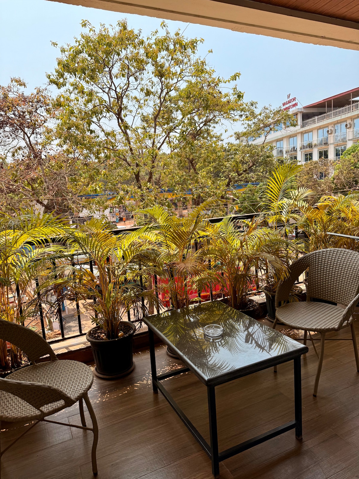 Acogedor estudio de temática tropical en el corazón de Vagator, a pocos pasos de la playa, Hilltop, el mercado nocturno de los viernes y los mejores clubes como Romeo Lane y el restaurante Mango Tree. Diseñado con plantas y tonos terrosos, cuenta con una cama doble, sofá y Smart TV, comedor, cocina totalmente equipada y baño moderno. Los huéspedes disfrutan de wifi de alta velocidad, acceso a la piscina y al gimnasio, aparcamiento para coches y bicicletas, seguridad 24/7 y energía de reserva. Perfecto para parejas, viajeros solitarios o amigos.