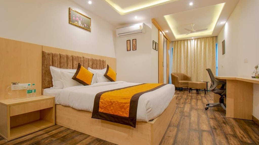 Urban Haveli, un refugio diseñado tanto para huéspedes corporativos como para parejas. Nuestro hotel ofrece un refugio tranquilo con habitaciones impecables e higiénicas y un personal comprometido a proporcionar un servicio excepcional. Disfruta de una deliciosa comida casera en nuestro restaurante o relájate en nuestra cafetería al aire libre con su encantador ambiente relajado. Con una ubicación estratégica, estamos a solo 5 km del aeropuerto y a 500 m de la zona industrial RIICO, lo que nos convierte en la opción perfecta para la comodidad y el confort.