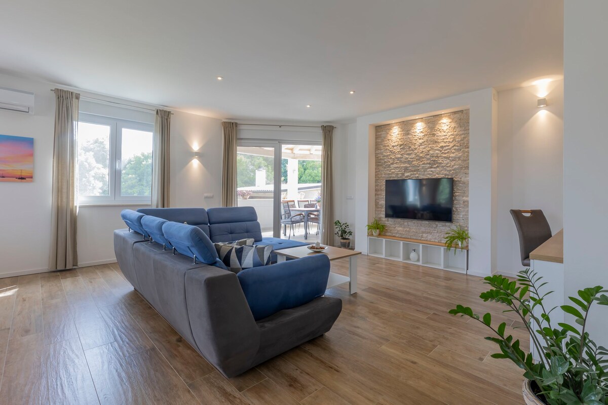 This beautiful apartment in Štinjan is in the last house in the row so you have a wonderful view of the woods and birds chirping every morning. There are amazing historical fortresses to explore in the tracking trails through the woods next to the property and many hidden wild beaches to be found at the end of every track. Also, only 10min walking or 2min driving you will find more beautiful beaches with views of the National Park Brijuni. The city center of Pula is a 10min drive away.