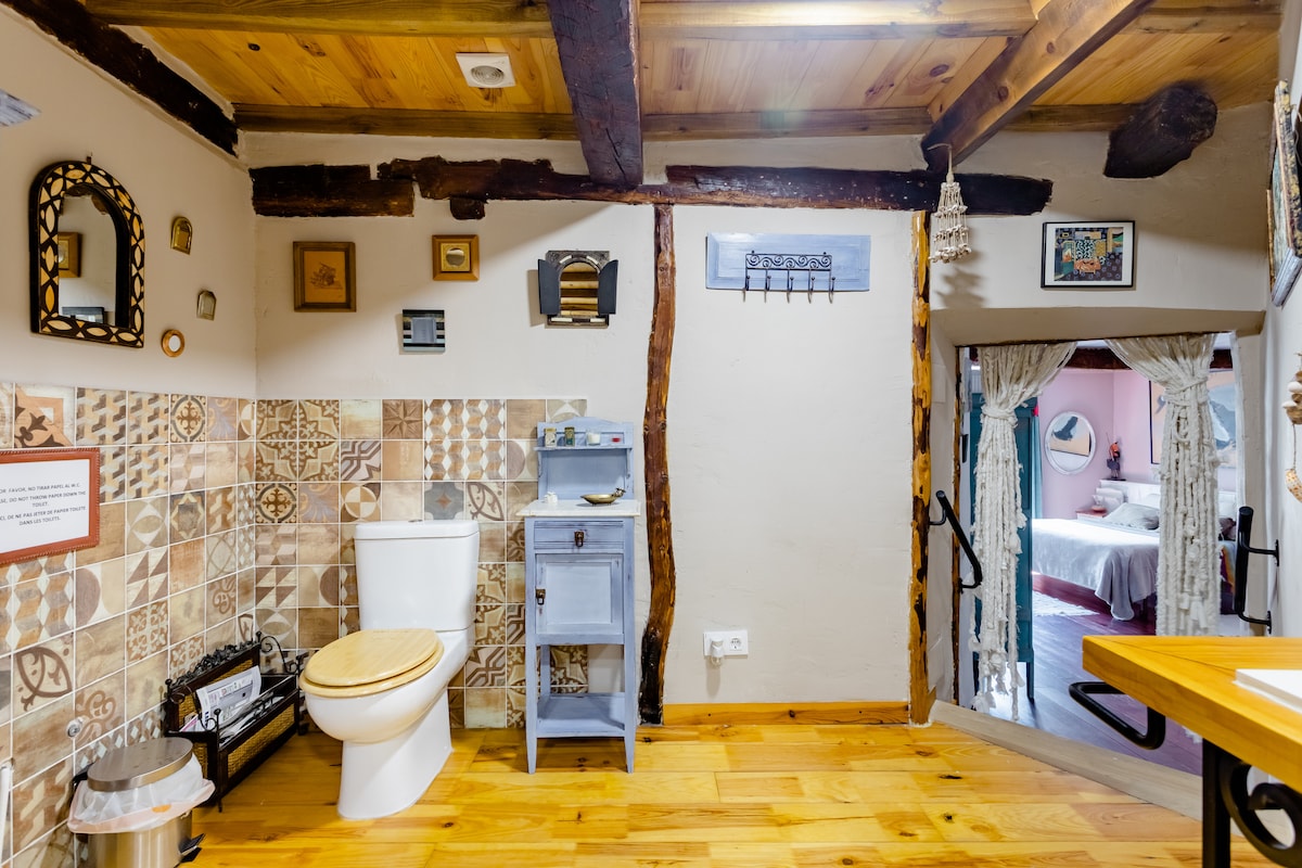 Desconecta de la rutina en este alojamiento único y relajante. Muebles hechos a mano, reutilizando diversos objetos, como una trilla, un yugo, cuevanos, viejas tablas, vigas de derrumbe, troncos de árbol...La casa se sitúa en la Serranía de Cuenca, dónde podrás disfrutar de plena naturaleza, hacer rutas de senderismo, practicar deportes de aventura, como vías ferratas, escalada, barrancos, kayak, espeleología. Existen charcas naturales donde refrescarse en verano. Disfrutar de un otoño mágico...