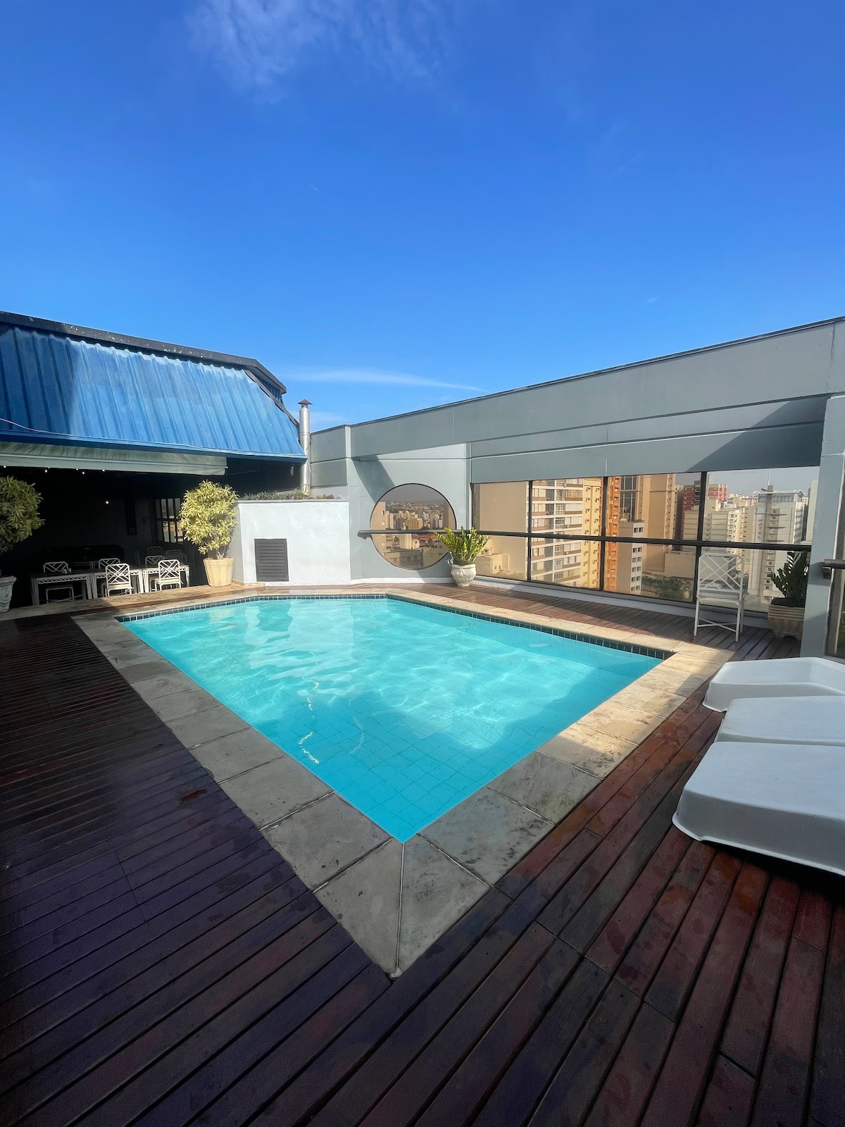 Amplios y cómodos apartamentos de 44 m2 con servicio de limpieza diario, ajardeceres completos, comodidades, sala de estar, cocina americana, aire acondicionado, TV por cable, teléfono, wifi, wifi, minibar abastecido, piscina, sauna, gimnasio, sala de juegos, espacio gourmet, cancha de squash, lavandería en el edificio y estacionamiento valet para tu comodidad, por un monto de R$ 25.00 por día.