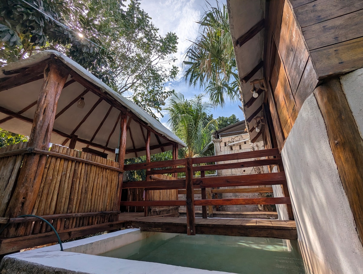 Descubre nuestro elegante alojamiento ecológico, perfectamente ubicado a las afueras de Valladolid en Yucatán, que ofrece fácil acceso a destinos que no te puedes perder. Disfruta de nuevas y espaciosas habitaciones con aire acondicionado, WiFi, puertos USB y camas Posturepedic. Explora los amplios jardines llenos de árboles frutales y aves vibrantes. Nuestra propiedad está a solo 6 minutos en coche de Valladolid y la cabaña está asegurada con puertas y paredes, lo que garantiza la privacidad y la seguridad de tu estancia. Reserva tu estancia para que disfrutes de una experiencia inolvidable.