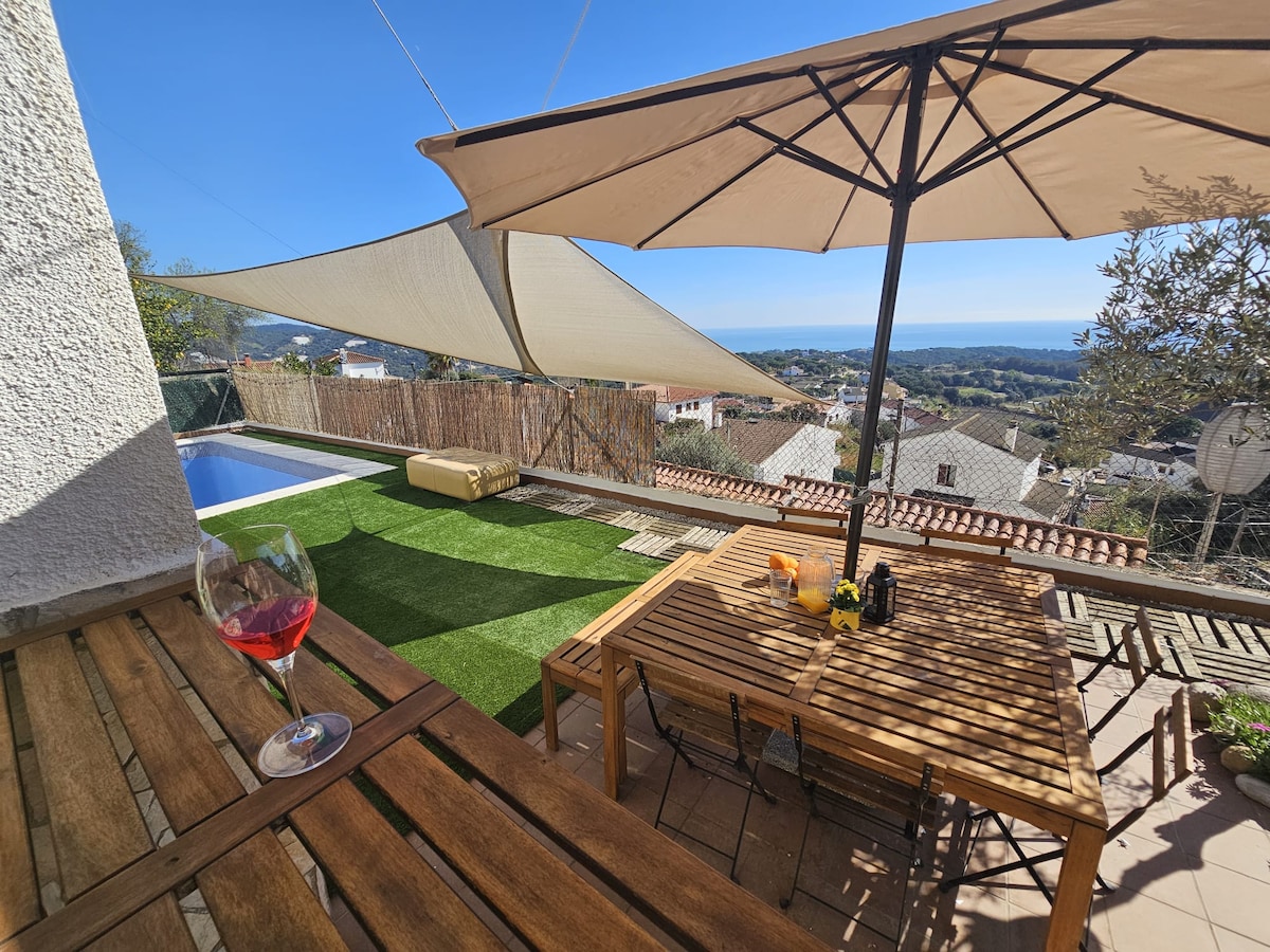 Remanso de paz en una arquitectura singular mid-century. Preciosa casa de descanso, entre olivos y bosques, situada justo al inicio del parque natural del Montseny. 🍽️Perfecto para cocinar y compartir en estancias familiares, con amigos o retiros. 🏊♂️Gran Piscina, con porche y zona de descanso 🍤Barbacoa 🛏️5 habitaciones para acomodar cómodamente a 9 personas. 🌳Jardín vallado, ideal si vienes con tus mascotas. 📍 Se encuentra a 1,5 kilómetros del encantador pueblo de La Garriga.