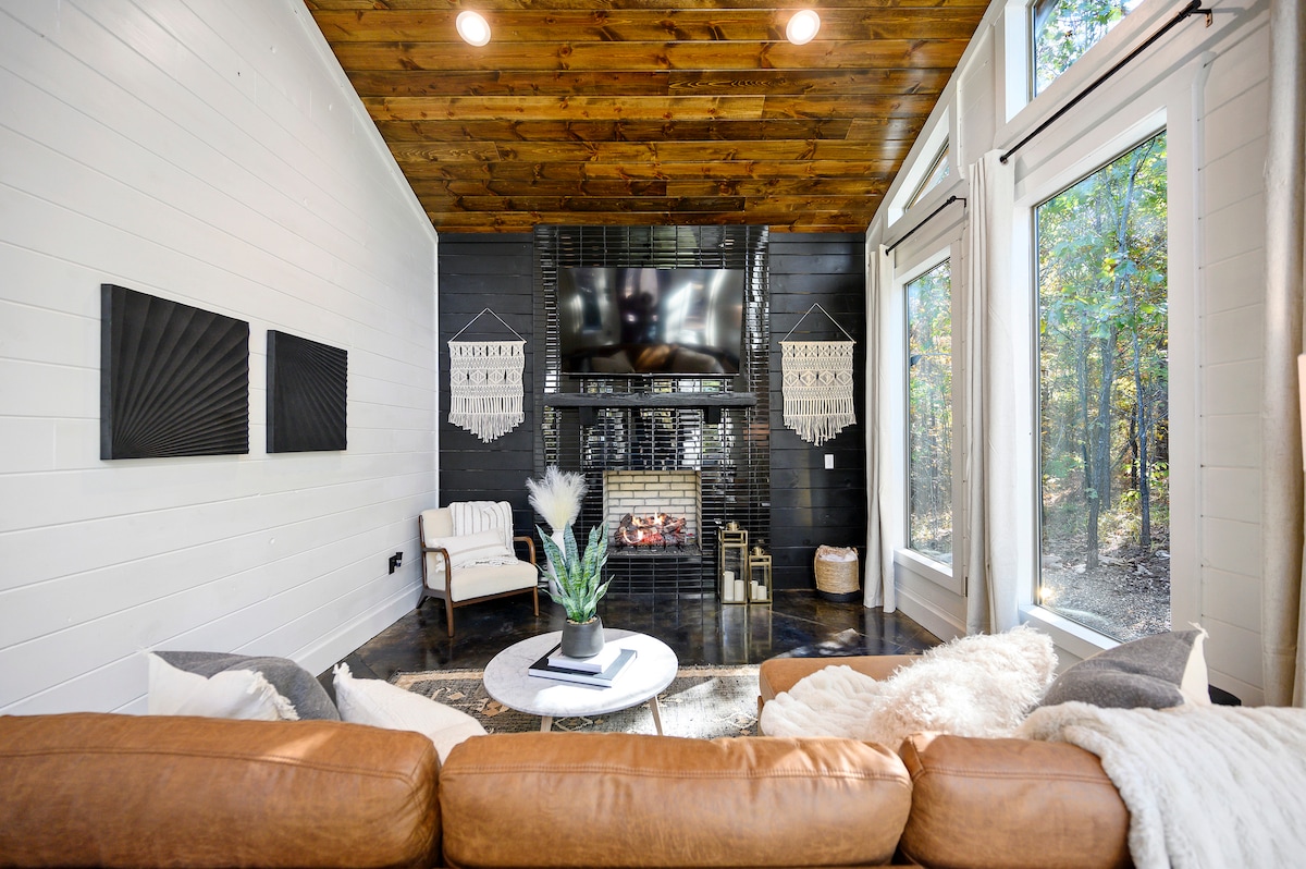 Cabaña de lujo moderna | 2 suites tamaño king • Cargador de vehículos eléctricos • Se admiten mascotas Descubre The Modern, una impresionante cabaña de diseño avanzado en 3,5 acres privados en Broken Bow. Con techos altos de 18 pies, grandes ventanas, una cocina de chef totalmente blanca, estufa de leña y 2 suites king de lujo (una con bañera profunda). Disfruta de las vistas al bosque, acurrúcate junto al fuego y carga tu vehículo eléctrico en el alojamiento. ¡Y se admiten perros! Reserva hoy mismo una escapada inolvidable.