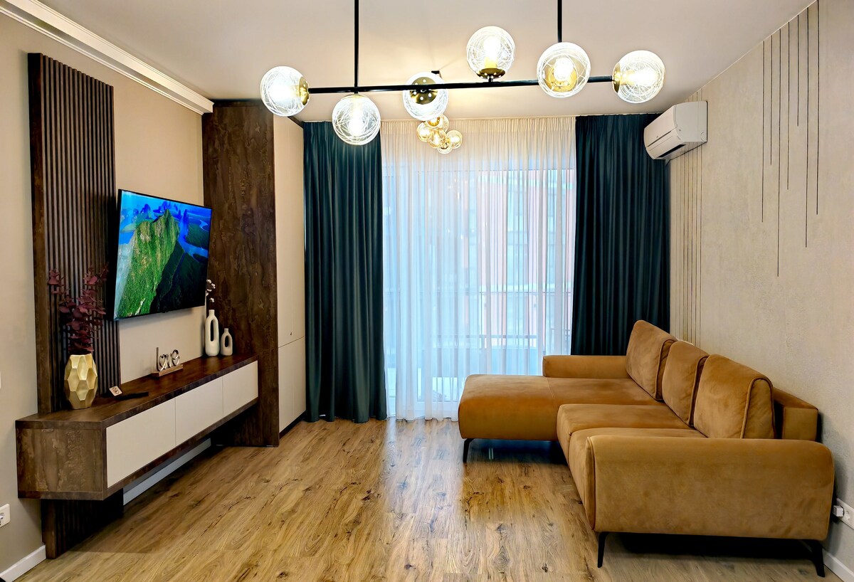 Moderno apartamento de 2 habitaciones en la Torre Aviației, junto al Museo de la Aviación. Elegante diseño contemporáneo, acabados prémium. Amplio dormitorio + cómodo sofá cama. Smart TV, Netflix y wifi de alta velocidad. Cocina totalmente equipada Aparcamiento privado y seguridad las 24 horas, los 7 días de la semana. A minutos del centro comercial Promenada y de los principales centros de negocios. Acceso rápido al parque Herăstrău y al aeropuerto. Check-in flexible para una estancia cómoda.