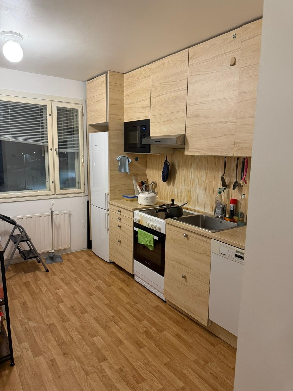 Apartamento de dos habitaciones maravillosamente tranquilo con sauna y balcón en un edificio de apartamentos. Aquí vivirás como en casa, con todas las facilidades para cocinar. Plaza de aparcamiento privada justo delante de la puerta. Buenas instalaciones también para trabajar en el escritorio. Wifi rápido. Zona de senderismo al lado y campo de golf Talin a 200 m. La playa está a 1 km. El gimnasio Elixia está a 1 km y el centro comercial Munkkivuori a 1,5 km. Parada de autobús 20 al lado y pasa por el centro cada 20 minutos.