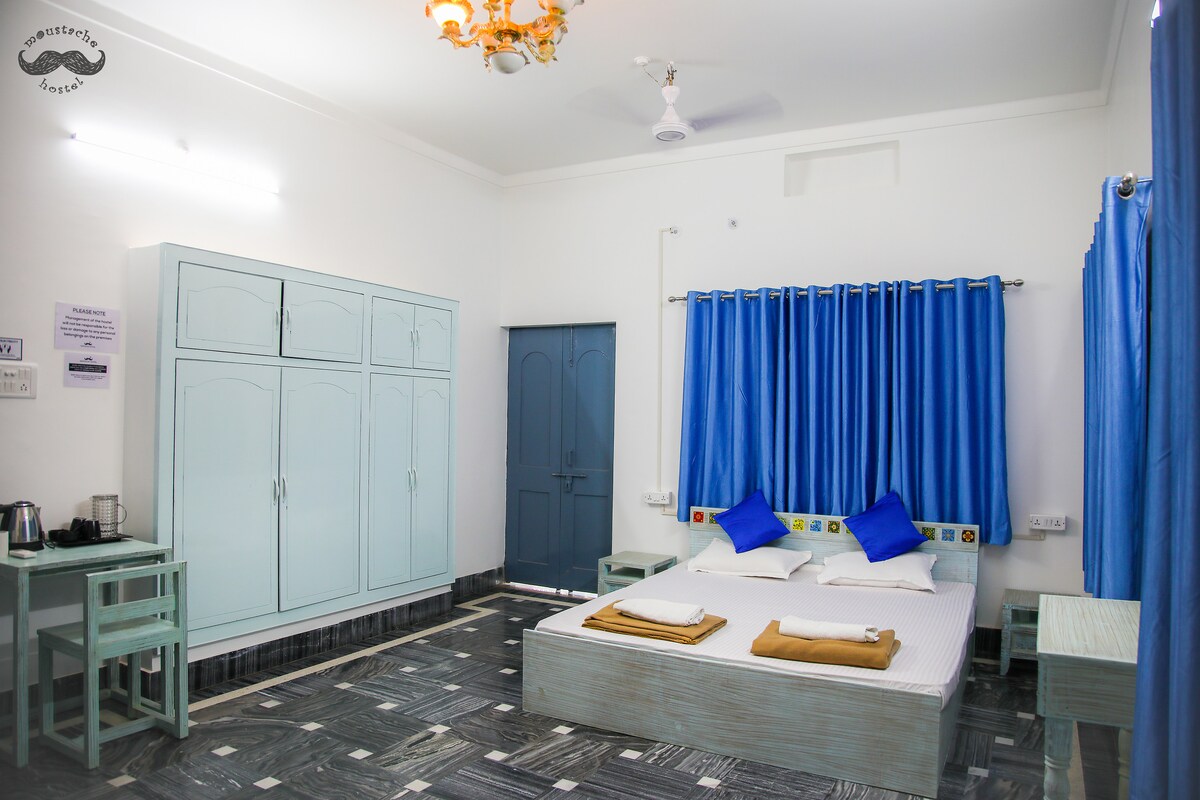Plan your day ahead in this cosy private room, featuring a king-sized bed, a TV, an AC, a work desk, and an ensuite washroom. We've arrived in one of the world's oldest living cities with Zostel Varanasi (Dashashwamedh). 5 mins from Dashashwamedh Ghat, our hostel in Varanasi brings together a vibrant common room, a breezy rooftop area, and comfortable dorms & private rooms.