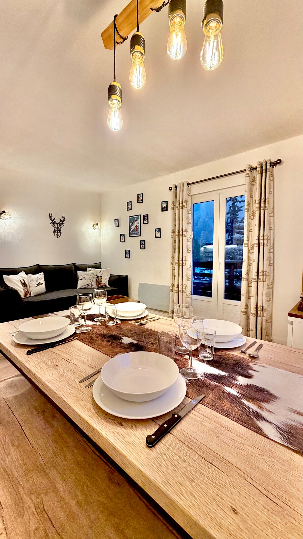 T4 compuesto por un salón con pantalla de 75 pulgadas y un amplio sofá esquinero, una cocina totalmente equipada con lavadora secadora, 3 dormitorios (1 suite principal y 1 zona de cabina). Su terraza le permitirá disfrutar de una vista despejada y del sonido del río cercano. Un jacuzzi y una sauna colectivos están disponibles para que te relajes después de una larga caminata o un día de esquí. El box con posibilidad de recarga para vehículos (1,7 kw/h) y el armario para esquís calefactado completan la oferta.