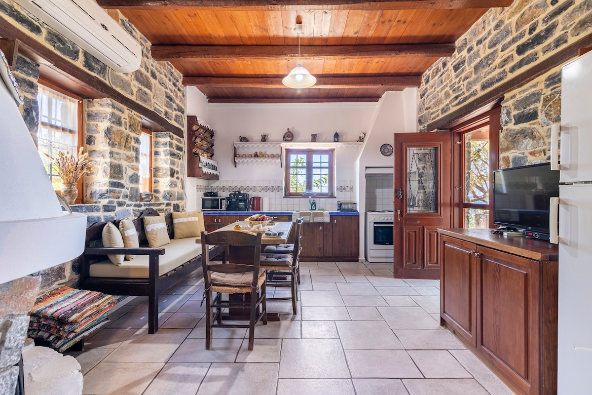Escápate a una villa exótica única en la garganta de Myli, a solo 15 minutos de Rétino. Esta villa de tres dormitorios combina la arquitectura tradicional de piedra con un ambiente cálido y rústico y cuenta con una piscina natural única. Un camino de 5 minutos te lleva a la villa, donde puedes disfrutar de una comida en una taberna cercana o relajarte en un entorno tranquilo. Ideal tanto para relajarse como para explorar, con rutas de senderismo y monumentos históricos a poca distancia.