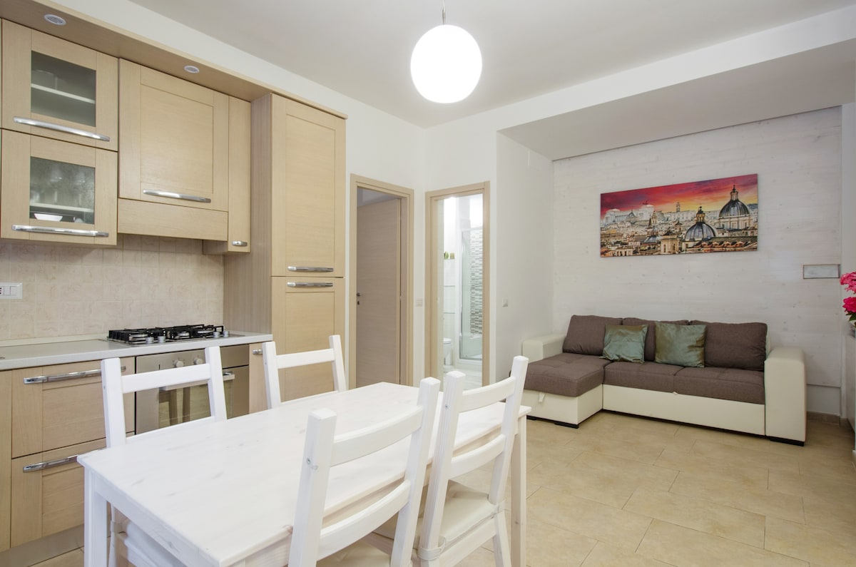 Leonardo Da Vinci Vatican Suite es un refinado apartamento de 50 m.c. que acaba de ser renovado. Tiene un dormitorio doble, baño, salón con sofá cama y cocina. El apartamento está situado en el corazón de Roma, a pocos metros del Vaticano, y todos los principales lugares turísticos son fácilmente accesibles a pie o en transporte público. La ubicación central, la comodidad de las habitaciones y el entorno tranquilo lo convierten en un hogar ideal para alojar cómodamente a 4 personas.