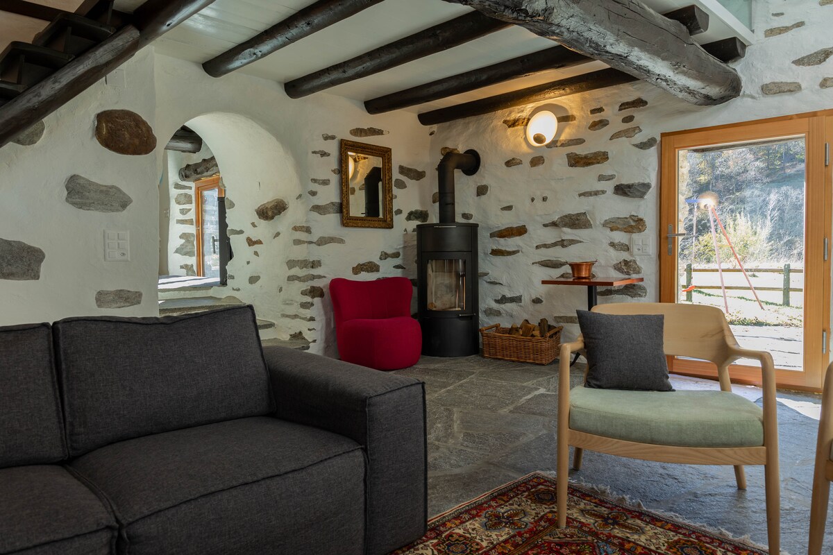 Relájate en este Rifugio único. Apartamento de 2 habitaciones y un aseo totalmente renovado en 2020, cuyo diseño interior ha sido completamente rediseñado. Reformado como loft con los materiales más nobles (granito Valser, parqué de palacio, mucha madera vieja, bañera independiente, chimenea de hierro abierta por dos lados, grifería de diseño). Con terraza y jardín protegidos. Ubicación soleada y tranquila. Entrada privada, sauna en el edificio anexo. Acceso directo a las pistas de esquí o autobús de esquí a tres minutos.