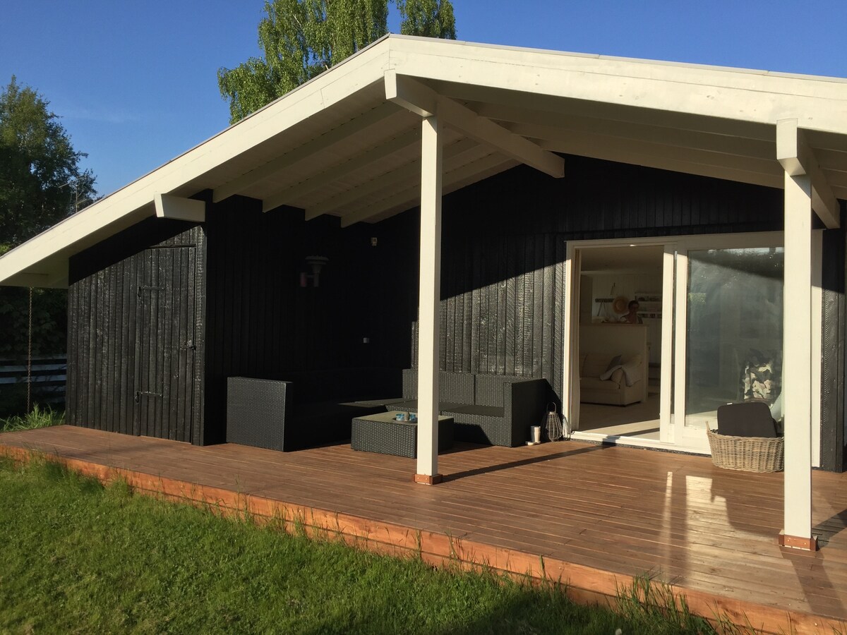Casa de campo muy luminosa y muy bien equipada, a 100 m de la playa. Gran jardín privado encantador con fogata y dos terrazas de madera. Aquí puedes encontrar un lugar soleado durante todo el día, y el último sol de la tarde se disfruta en la terraza cubierta orientada al oeste. La casa es bonita y está bien equipada, y te sentirás como en casa de inmediato. Aquí hay un buen camino para caminar/andar en bicicleta a Gilleleje (3 km) y a Dronningmølle. La parrilla de gas es de uso gratuito. Esperamos poder alquilar nuestra hermosa casa de campo.