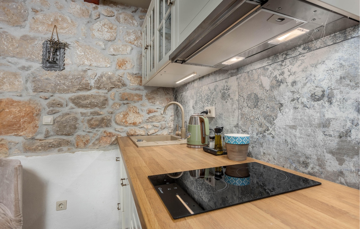 Villa BELLA VISTA en Tribulje, isla de Krk para 8 personas. Esta espaciosa villa tiene cuatro dormitorios con baño y cinco baños y se distribuye en dos niveles. La piscina privada está a tu disposición. Esta villa recientemente renovada es donde lo rústico y lo moderno se encuentran: todo el mobiliario moderno a estrenar con un toque de detalles tradicionales de piedra. Los amigos peludos son bienvenidos. La villa está totalmente equipada y situada cerca del mar. ¡Reserva esta villa de ensueño en la isla de Krk!