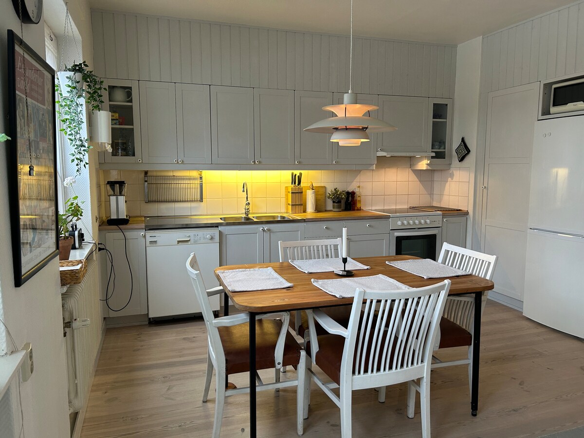 La casa se encuentra en una zona tranquila y cultural protegida en el centro de Landskrona. El aparcamiento se puede realizar en la zona, pero no es gratuito, pero CUESTA SEK2/hora las 24 horas, los 7 días de la semana. El departamento está ubicado en el primer piso de una casa de dos familias, donde vive la pareja anfitriona en el departamento de arriba. La zona es de unos 74 metros cuadrados, divididos en cocina, baño, dormitorio con cama doble y dos salones, uno de los cuales es un sofá cama. La granja es exuberante y acogedora y ofrece varias zonas para sentarse.