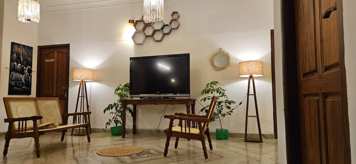 ¡Te damos la bienvenida a Padnamabham, tu retiro sereno en Trivandrum! A solo 5 minutos del aeropuerto de Trivandrum y del templo Padmanabha Swamy, y a 20 minutos de la playa de Kovalam, nuestra villa de 3 BHK totalmente amueblada es ideal para estancias largas. Disfruta de comodidades modernas, como una acogedora sala de estar con TV de 55 pulgadas, wifi de alta velocidad y cocina totalmente equipada. Relájate en el amplio balcón rodeado de vegetación, perfecto para relajarte después de explorar las mejores atracciones de Trivandrum.