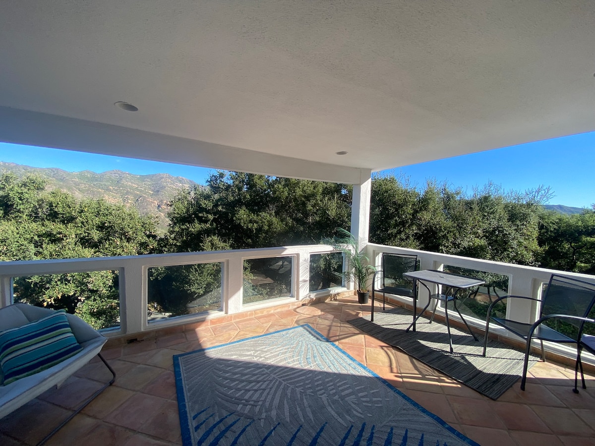 Take it easy at this unique and tranquil getaway. Our studio guest house is tucked away in the hills above Newbury Park with quick access to town for shopping or restaurants and located a short walk from the Rosewood Trailhead with access to thousands of acres of dedicated hiking and biking open space. Enjoy a private patio with beautiful views and peaceful spaces to enjoy outdoor. We live on property in the main house so additional amenities can be provided to make your stay personalized.