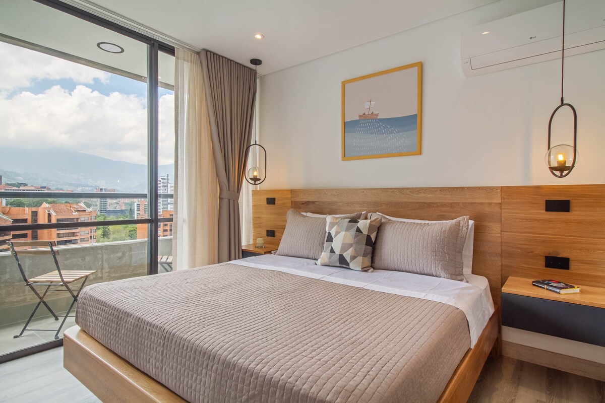 RENOVACIÓN RECIENTE :) -Internet de alta velocidad ideal para trabajo remoto -Aire acondicionado -Apartamento de diseño industrial totalmente renovado -Cama 2x2 -Impresionantes vistas de Medellín -Piso 19 -Ubicación inmejorable en Poblado cerca de Provenza y Parque Lleras -Modernas instalaciones -Amplia sala de estar -Smart TV x 2 -Cocina totalmente equipada -Torre Lavadora y Secadora independiente -Piscina -Gimnasio -Coworking -Restaurante dentro del edificio -Auto check-in -Seguridad 24/7