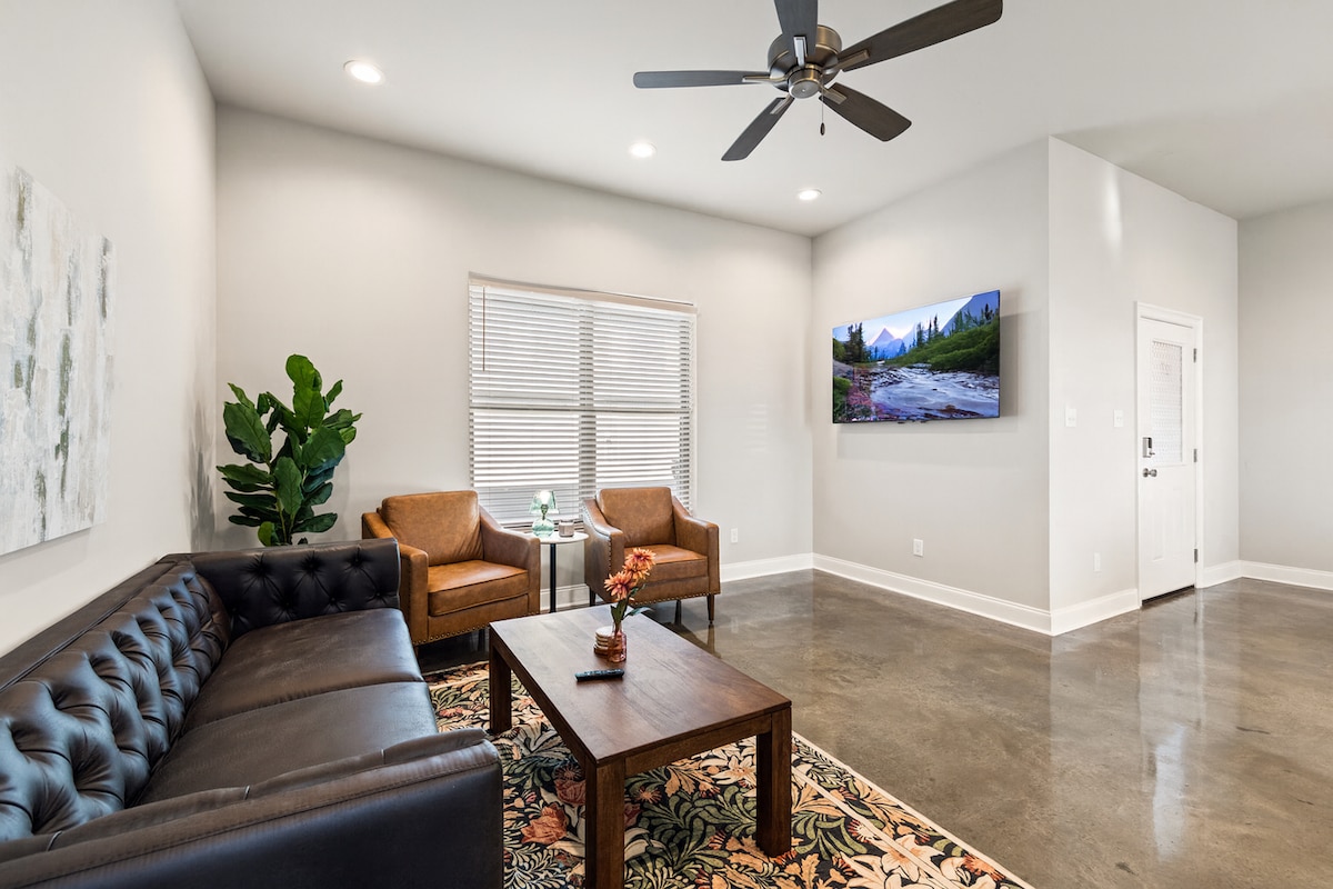 Escape to this stunning luxury home on the Vermilion River in Milton, just minutes from Youngsville. Enjoy river views from the open living & kitchen areas, all designed with a bright, airy feel. Unwind on the back patio with a hammock, swing, chairs, fire pit, and BBQ grill. Each Bedroom & living area has a TV. Fast WiFi makes it perfect for streaming or remote work. Peace, comfort, and style await! Place sleeps 8 with 3 beds, two single cots. It could sleep up to 10 counting the two couches.