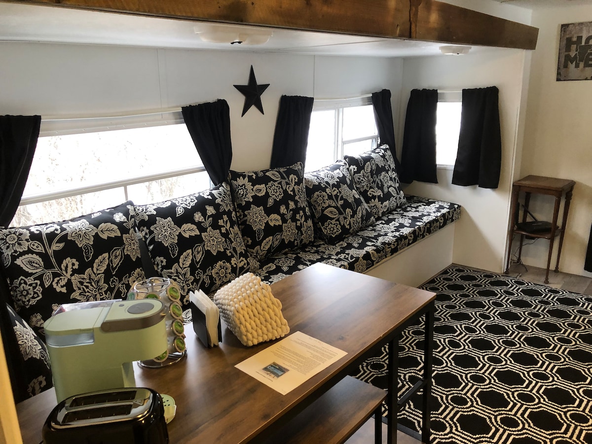 Ven a disfrutar de una estancia cómoda en nuestra autocaravana estilo «glamping» con muchas comodidades. Sillones reclinables dobles con asientos con calefacción y masaje, chimenea de LP o caldera para la calefacción y aire acondicionado para los cálidos días de verano, un sofá cama plegable. Disfruta de la ducha caliente (bajo demanda). Ubicación céntrica y fácil acceso a muchos lugares locales. Disfruta de museos, rutas de senderismo, restaurantes y muchas otras atracciones locales que ofrece Upper Valley. Lugar acogedor para cualquier ocasión.