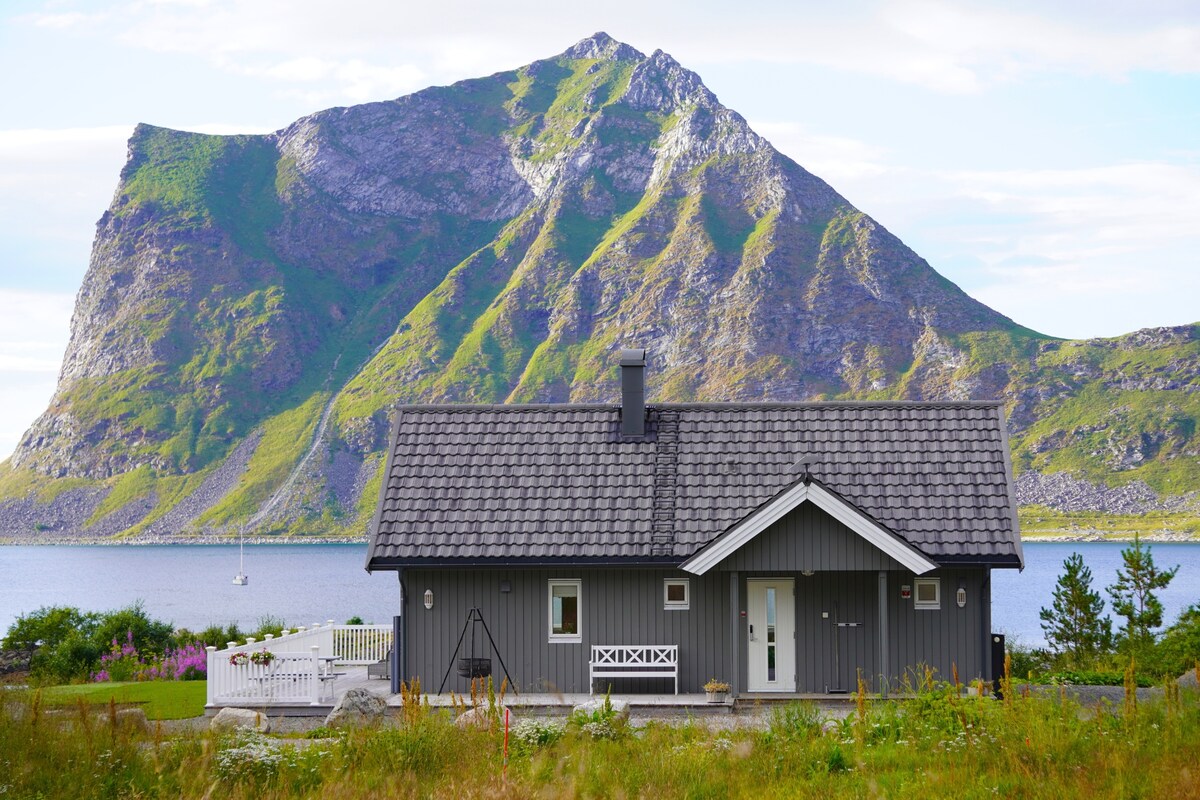 ¡Lo único que puedes escuchar es la naturaleza! ¡Todo lo que ves es la naturaleza! Un mar infinito, poderosas montañas, todo lo que Lofoten es conocido. Este es el cielo en la tierra. Cabaña con todo lo que puedas soñar y un estándar muy bueno. Sala de estar con vista panorámica, tres dormitorios, un gran baño con lavadora. Una cocina bien equipada donde no le falta nada. Amplia terraza frente a lo que más cuenta: ¡naturaleza y silencio!