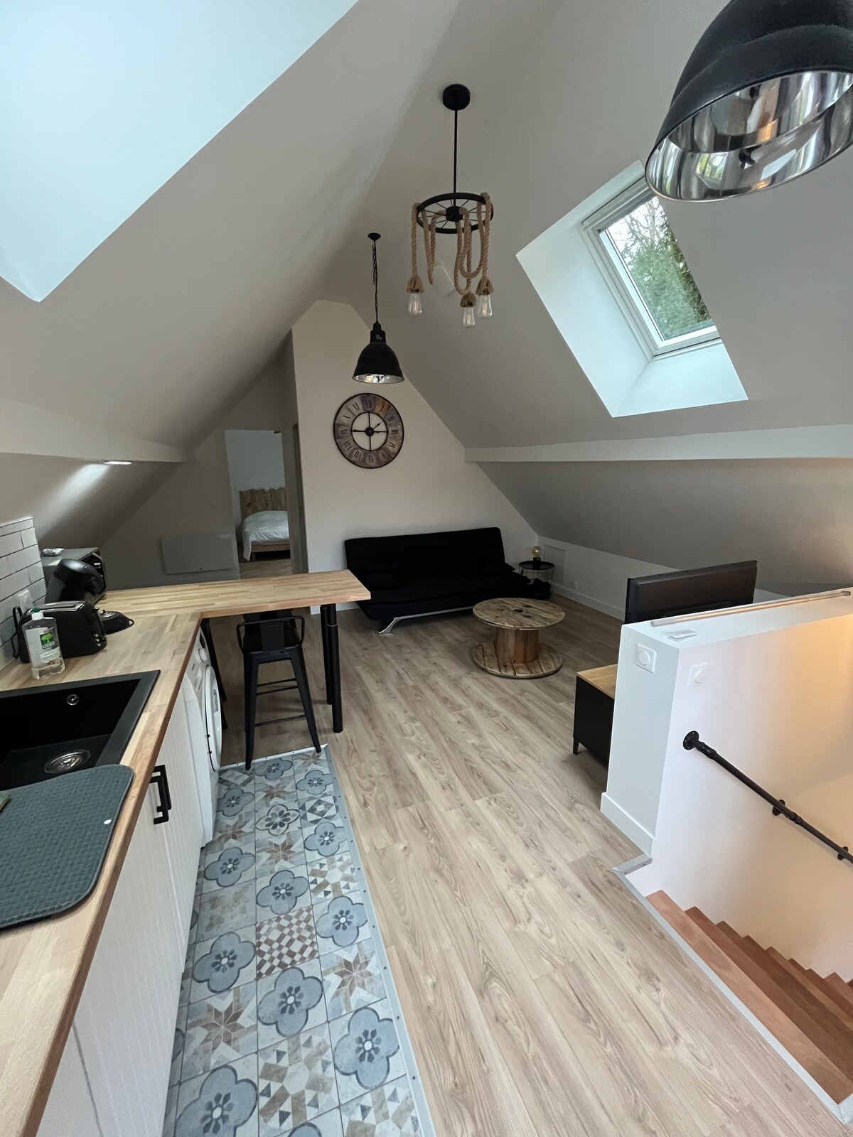 Coqueto estudio independiente en propiedad. Alquiler de estudio reformado entre senlis y chantilly cerca del hipódromo y el castillo de chantilly. Consta de una cocina equipada con nevera con congelador, horno, placa vitrocerámica, microondas, lavadora, cafetera, hervidor de agua y todo lo necesario para cocinar. Ropa de cama nueva y de alta gama (colchón Simmons), TV de pantalla plana, wifi. Muy bonito baño con ducha, toallero eléctrico, inodoro suspendido...