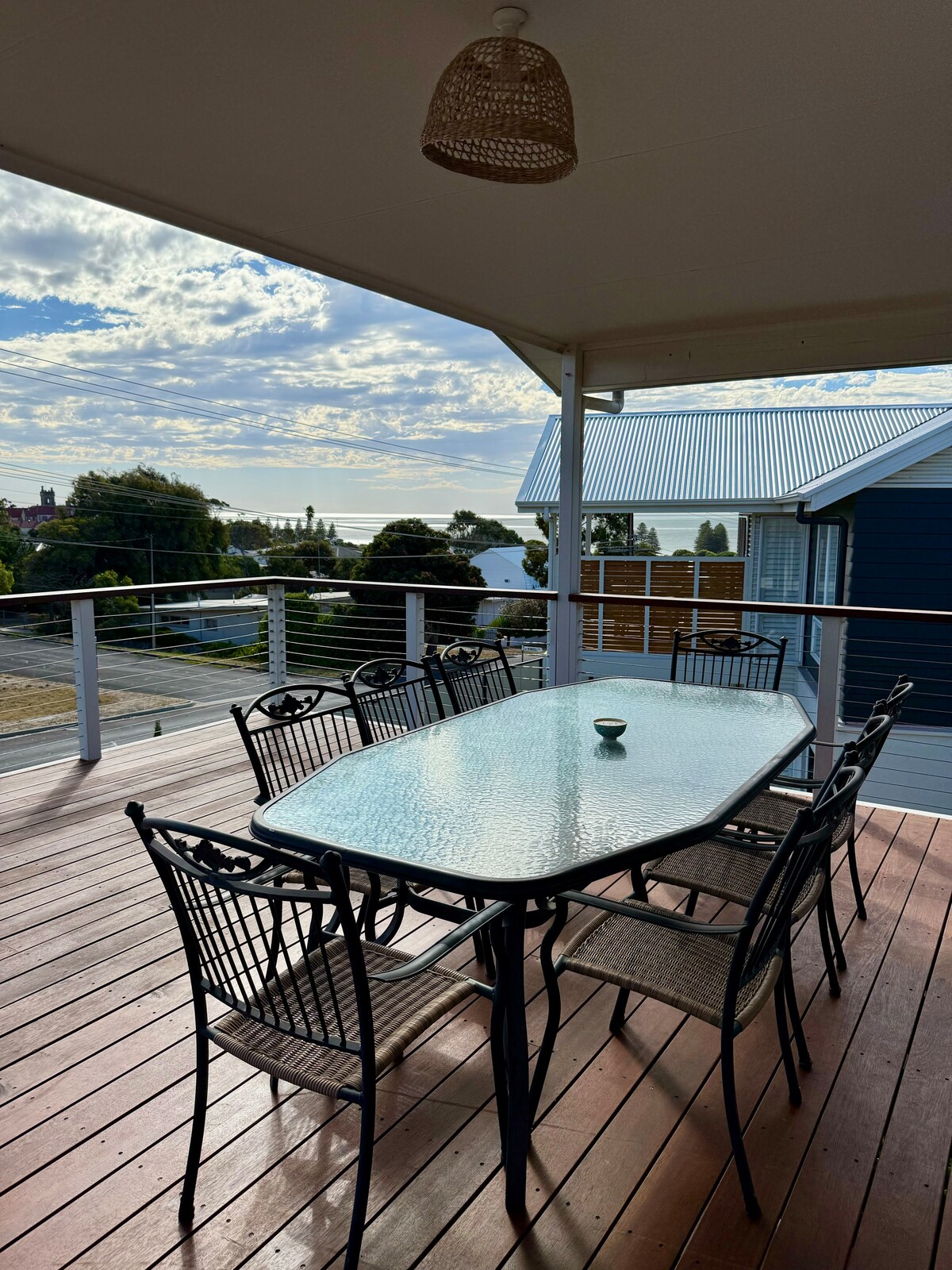 Perched on a hill you’ll enjoy panoramic views of Encounter Bay from this inviting, pet-friendly home, with a private Finnish cedar sauna. Relax while taking in the ocean views through the floor-to-ceiling windows in the spacious, bright family room, or step into the sauna after a day exploring the coastline. Featuring a large, fully equipped kitchen, meals can be enjoyed at the 8-seater dining table. High-quality sheets & towels are provided, so you don’t need to worry about bringing linens.